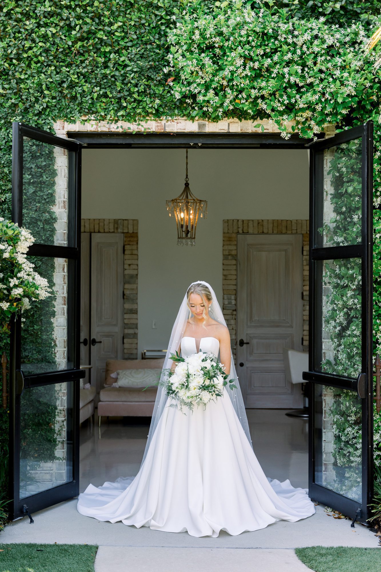 A soft and romantic bridal portrait captured at Wrightsville Manor in Wilmington, North Carolina. Photographed by Wrightsville Manor wedding photographers, this image highlights the venue’s natural textures, warm light, and elegant, garden-inspired atmosphere.