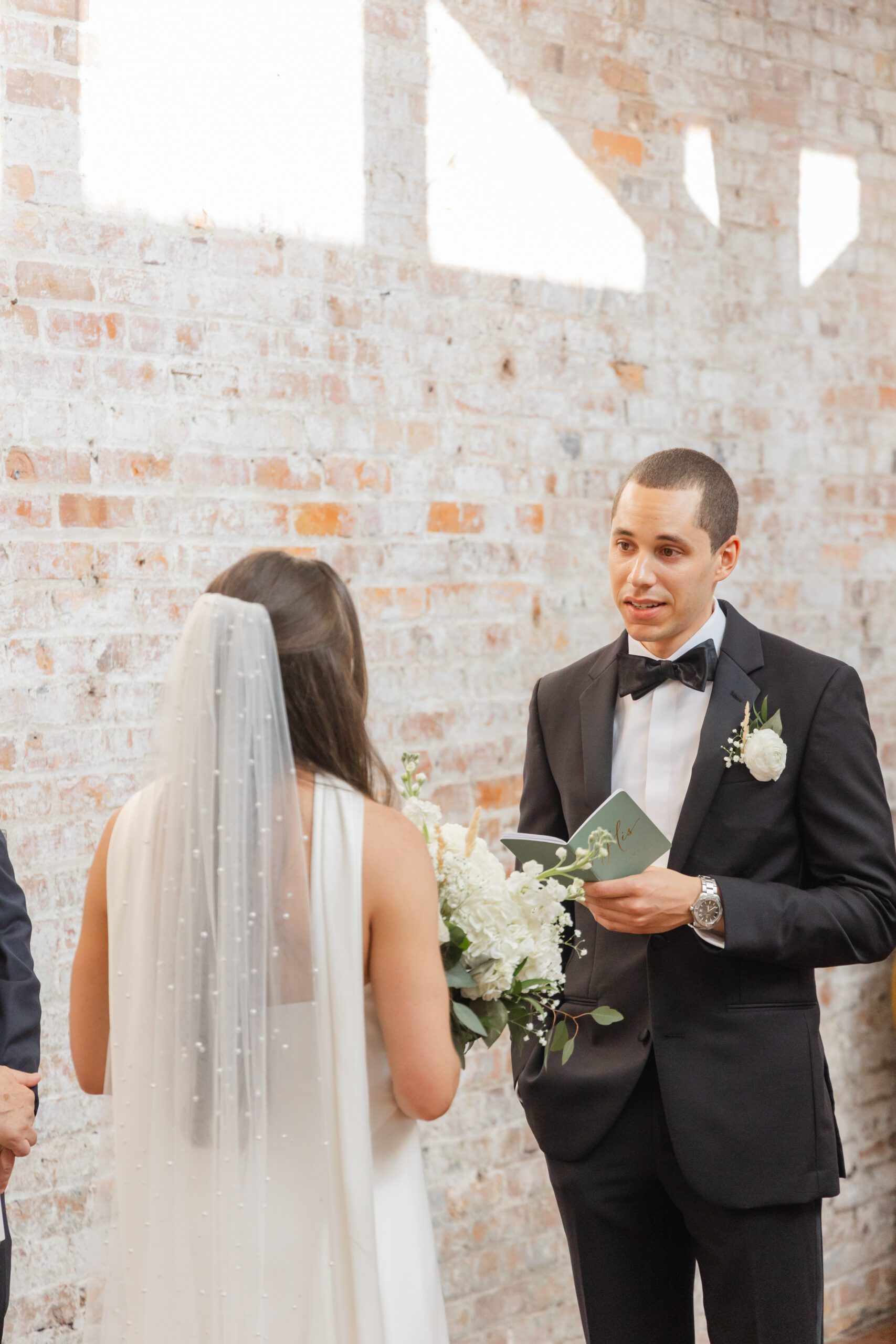 A romantic indoor ceremony at Bakery 105 in Wilmington, NC.