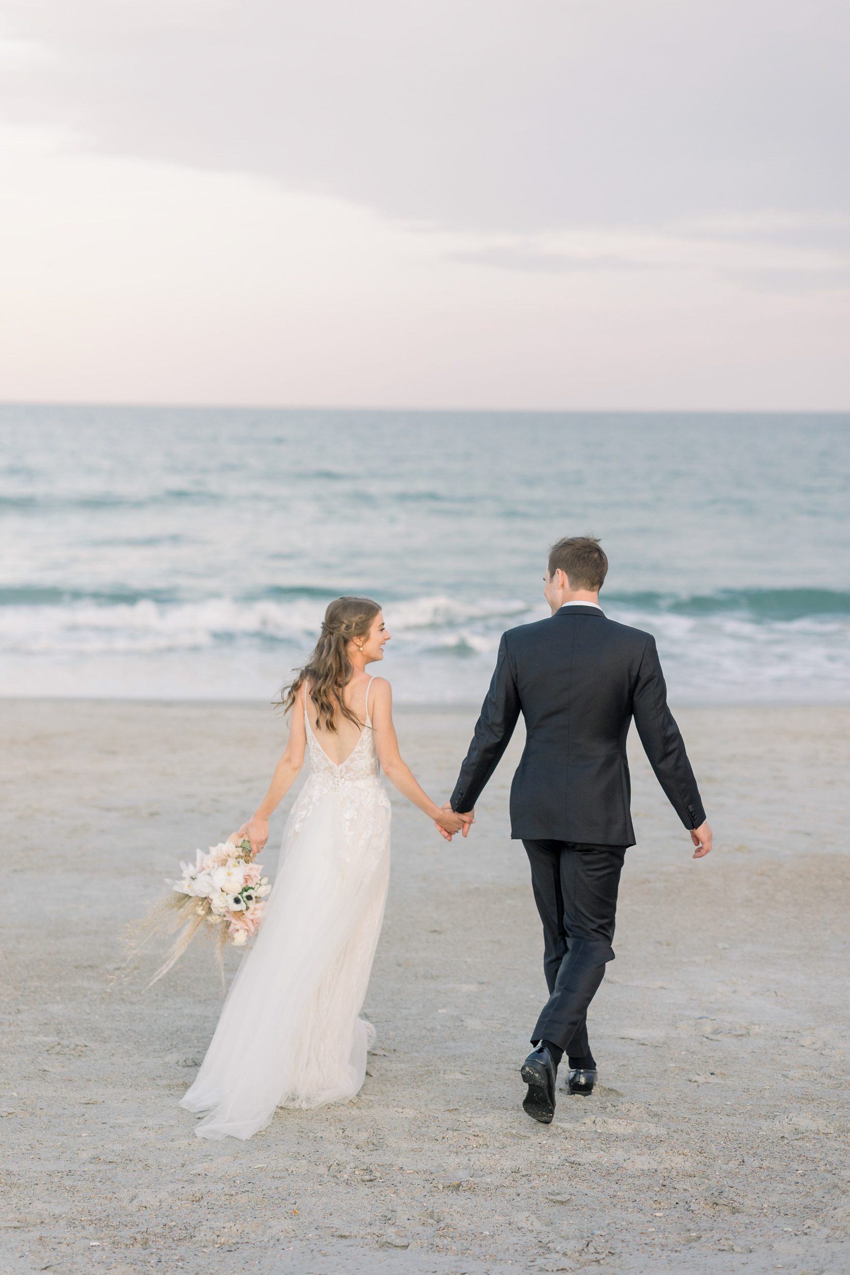 We often begin near the venue itself, using clean lines and open areas to set a calm tone. From there, we take advantage of nearby beach access, where open skies and water bring softness and movement into portraits. When the light shifts, we adjust accordingly, choosing paths, dunes, or interior spaces that maintain a natural look without interrupting the flow of the day.
